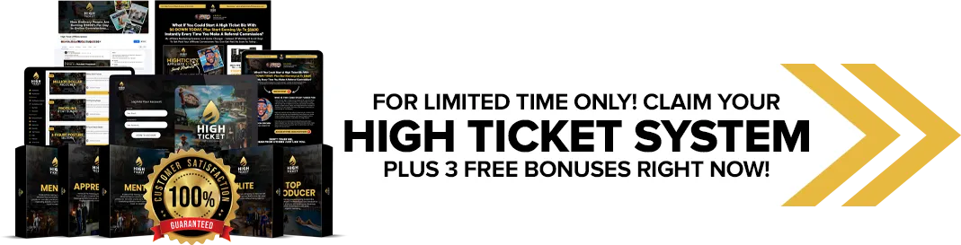 DISCLAIMER: The sales figures stated on this page and discussed in the training curriculum are our personal sales figures and in some cases the sales figures of previous or existing clients. Please understand these results are not typical. We’re not implying you’ll duplicate them (or do anything for that matter). The average person who buys “how to” information gets little to no results. We’re using these references for example purposes only. Your results will vary and depend on many factors including but not limited to your background, experience, and work ethic. All business entails risk as well as massive and consistent effort and action. If you’re not willing to accept that, please DO NOT PURCHASE FROM HIGH TICKET AFFILIATE SYSTEM.